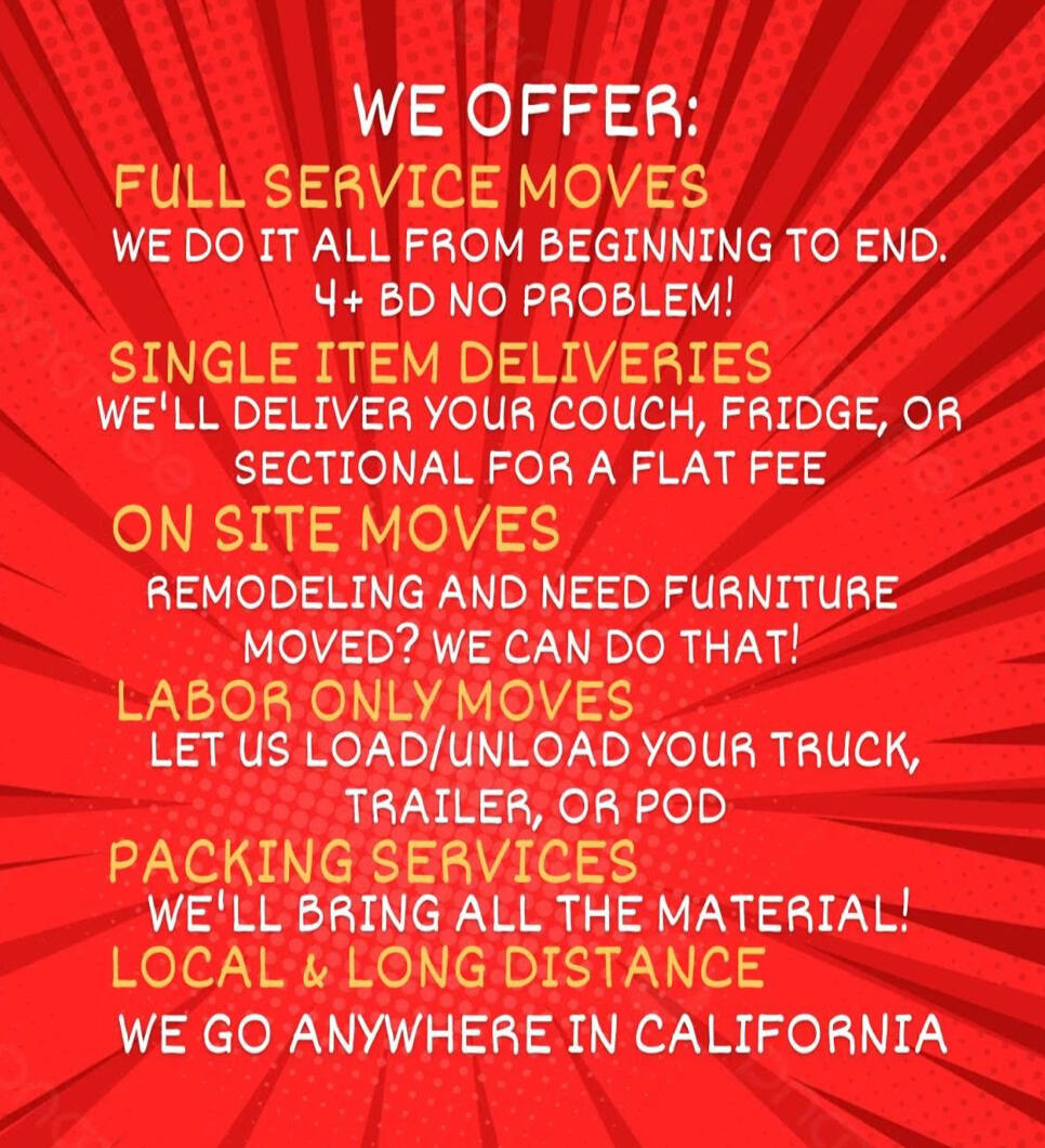 Macho Movers has you covered. Our team is ready to help make your move in the Central Valley as stress free as possible. Our transportation experts quickly move your valuables from A > B, no need to worry when Macho is handling your move.